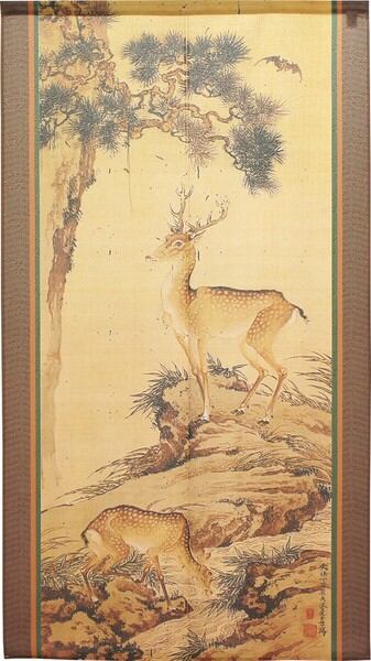 ★のれん「渡辺崋山_蝠鹿溪澗図」 約幅 85cm × 丈 150cm 1点