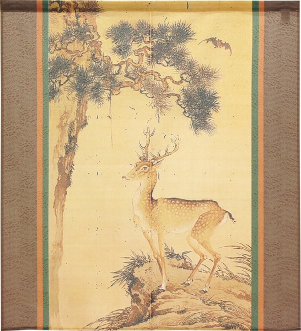 ☆のれん「渡辺崋山_蝠鹿溪澗図」 約幅 85cm × 丈 150cm 1点