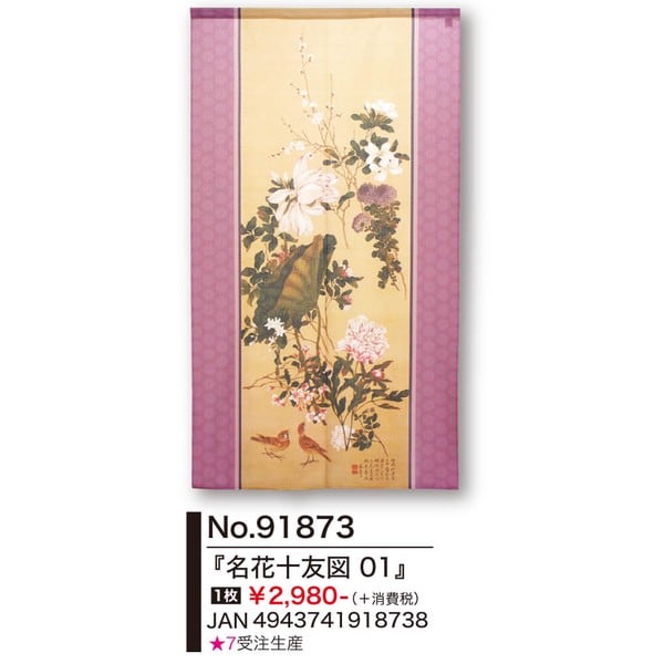 ★のれん「渡辺崋山_名花十友図 01」 約幅 85cm × 丈 150cm 1点