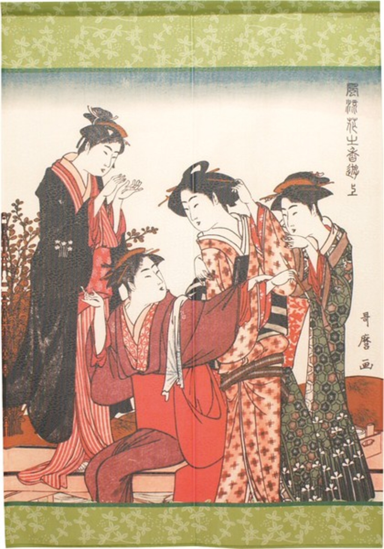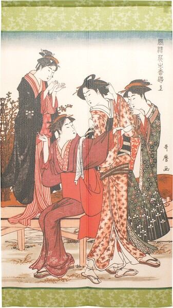 ☆のれん「喜多川歌麿_風流花之香遊」 約幅 85cm × 丈 120cm 1点