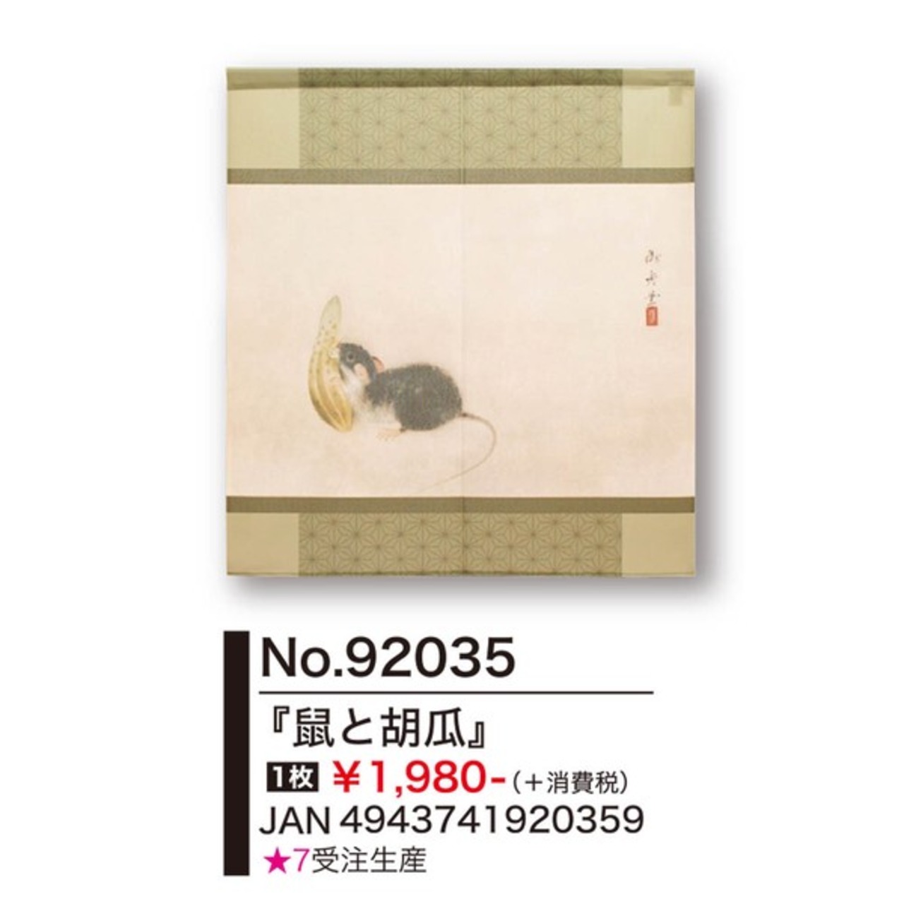 ☆のれん「速水御舟_鼠と胡瓜」 約幅 85cm × 丈 120cm 1点