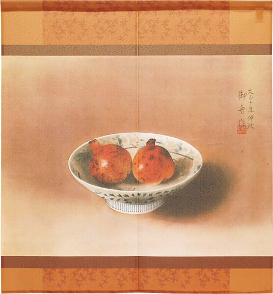 のれん 受注生産 目隠し 「速水御舟_鍋島の皿に柘榴」 日本製 和風 / 家具・インテリア ファブリック・敷物