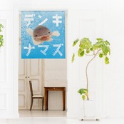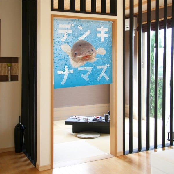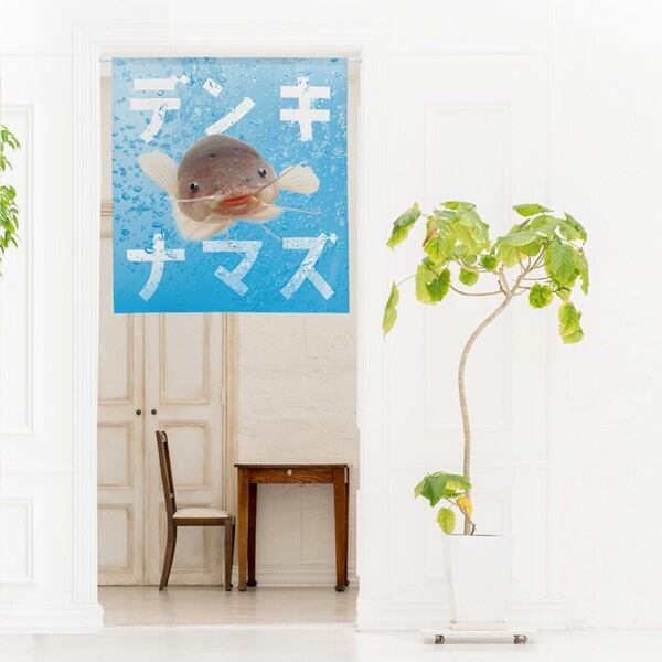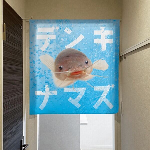 のれん 受注生産 目隠し うおづら「デンキナマズ」幅85×丈90cm 日本製 魚 / 家具・インテリア ファブリック・敷物