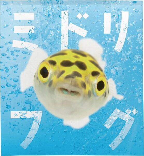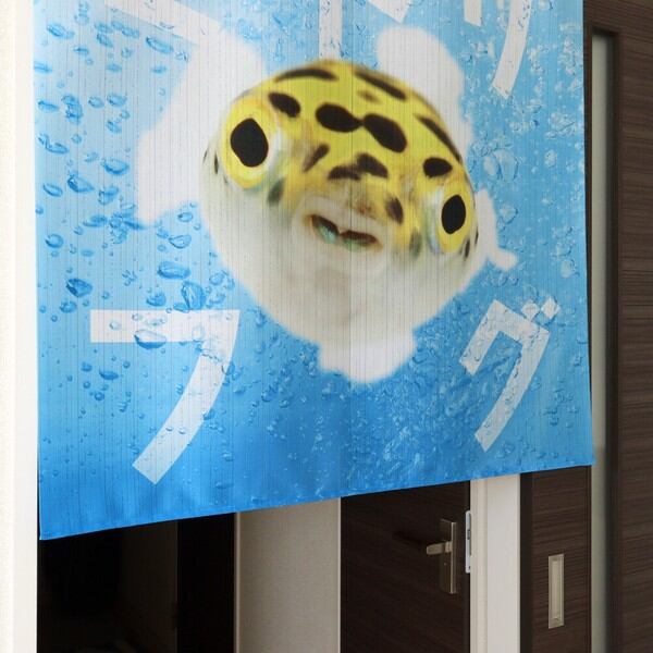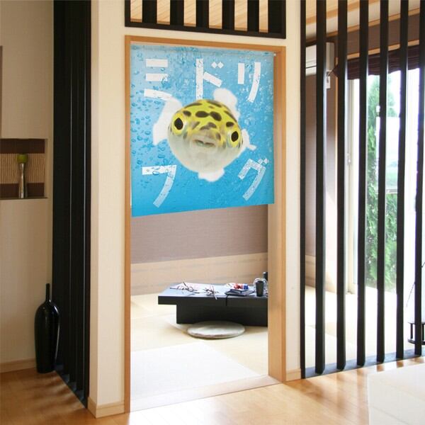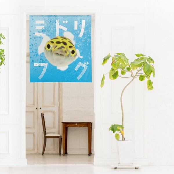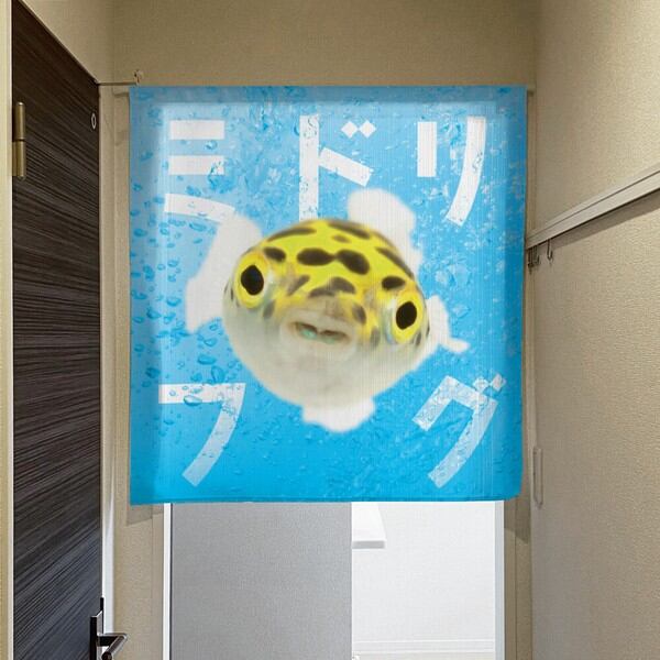 のれん 受注生産 目隠し うおづら「ミドリフグ」幅85×丈90cm 日本製 魚 / 家具・インテリア ファブリック・敷物