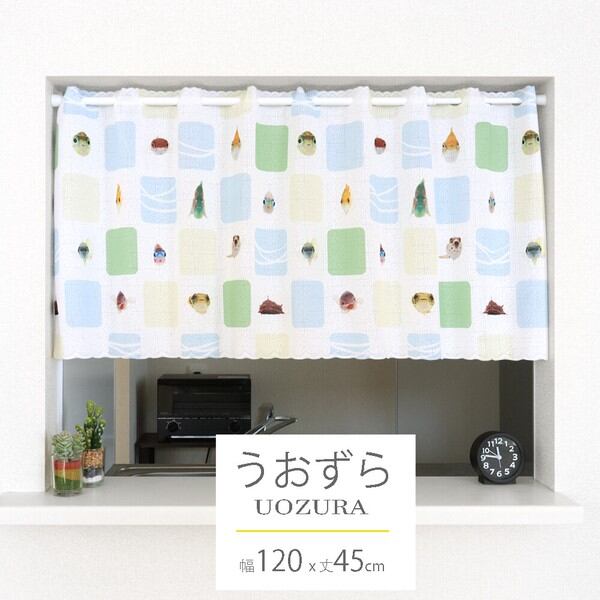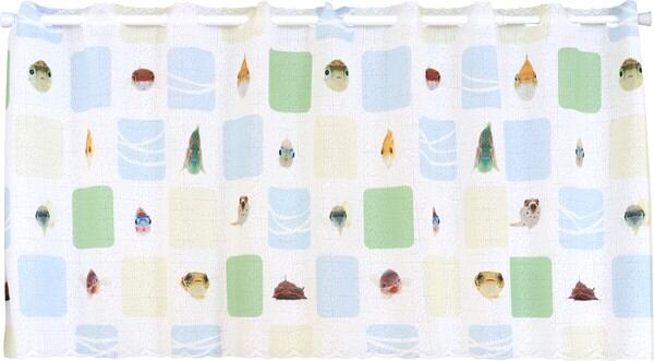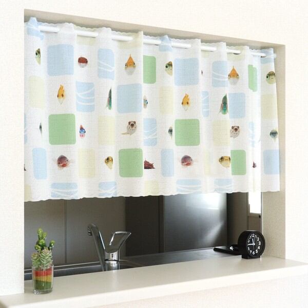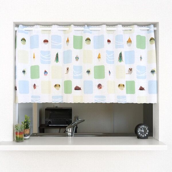 受注生産カフェカーテン 「うおづらタイル」幅120×丈45cm 日本製 魚 / 家具・インテリア ファブリック・敷物 カーテン・ブラインド