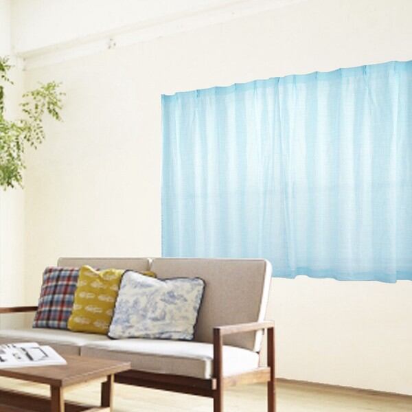 ☆「麻100% カーテン ブルー」100X133 2枚組 1点