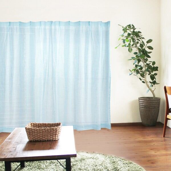 在庫限り 「麻100% カーテン ブルー 2枚組」 日本製 / 家具・インテリア ファブリック・敷物 カーテン・ブラインド