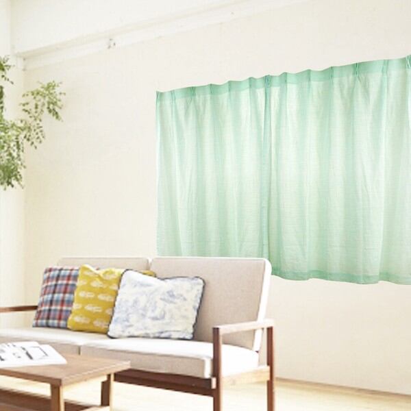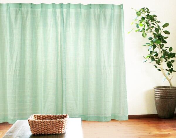 在庫限り 「麻100% カーテン グリーン 2枚組」 日本製 / 家具・インテリア ファブリック・敷物 カーテン・ブラインド