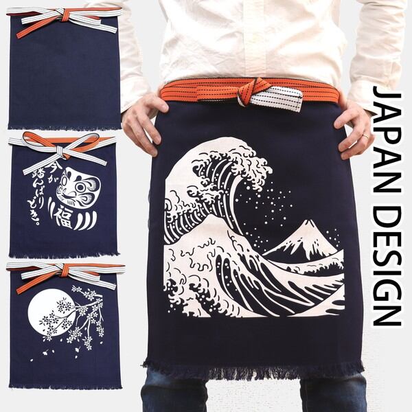 無地/帆布/エプロン/北斎/白波/だるま/達磨/桜/月/居酒屋