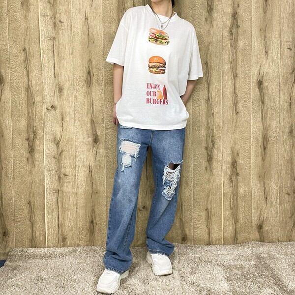 Tシャツ トップス ハンバーガー プリント ロゴ 春 夏 2320218