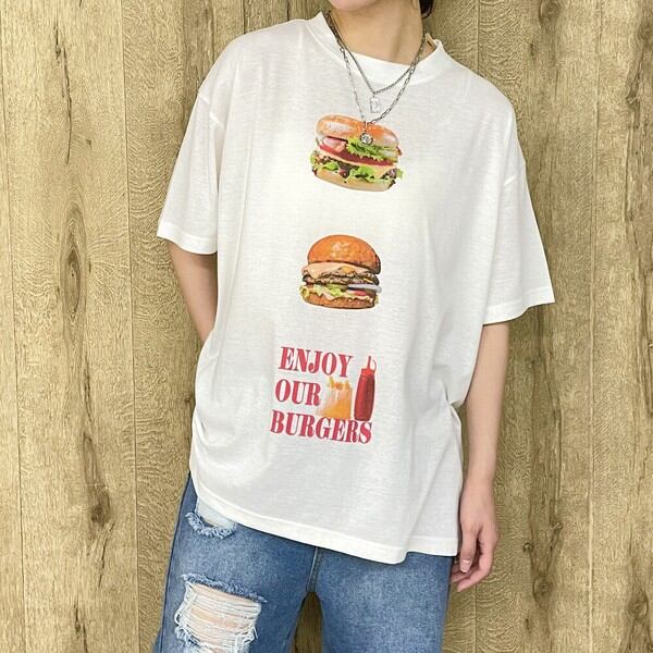 hamburgerプリントTシャツ / ファッション レディースアパレル トップス Tシャツ・カットソー