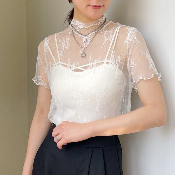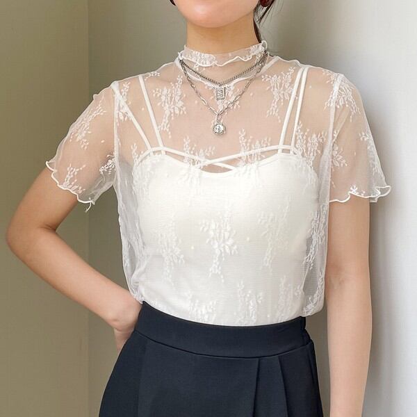 TOPS トップス チュール レース 半袖 春 夏 2321035