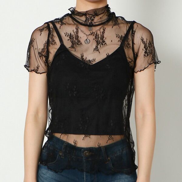 1枚でもインナーとしても着回しが出来る万能トップスが登場★小花柄のチュールレースが程よく肌に透け、ほんのりフェミニンなムードを演出♪春秋にはカーディガンやジャケットのインナーにしたり夏にはカップ付きのキャミを合わせ1枚でサラッと着こなせる◎ストレッチレースの柔らかい生地を使用しているので窮屈感が無く、快適な着心地ながらも適度に身体にフィットするシルエットは女性らしさを引き立ててくれます☆