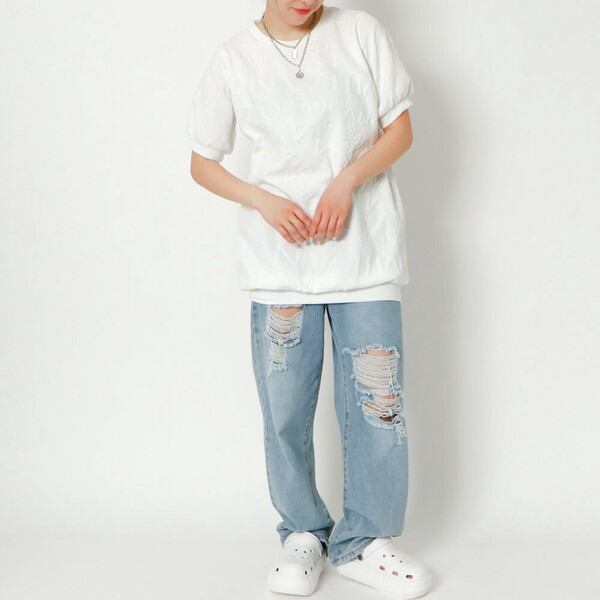 ミラノジャガード半袖チュニック / ファッション レディースアパレル トップス