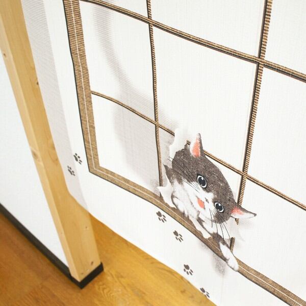 のれん 目隠し 85X150cm みしまゆかり「いたずらキャット」 日本製 当日発送 / 家具・インテリア ファブリック・敷物