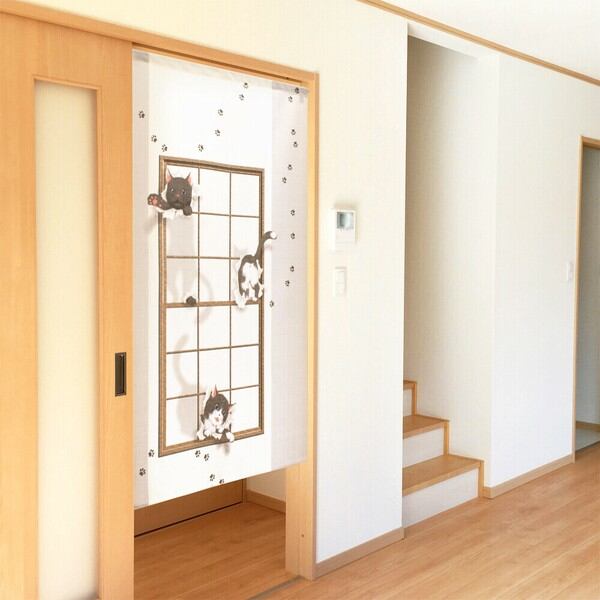 いたずら猫のイラストが3Dアートで立体的に見える新感覚なのれん
