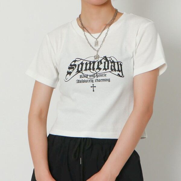 Tシャツ トップス ロゴ プリント コンパクト ショート丈 春 夏 2328543