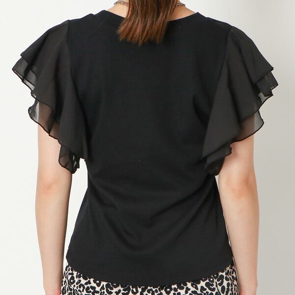 テレコリブ袖フリルプルオーバー / ファッション レディースアパレル トップス Tシャツ・カットソー
