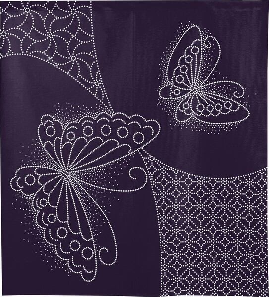 のれん 受注生産 目隠し 刺し子風 蝶々 85×丈90cm 日本製 和柄 和風 / 家具・インテリア ファブリック・敷物