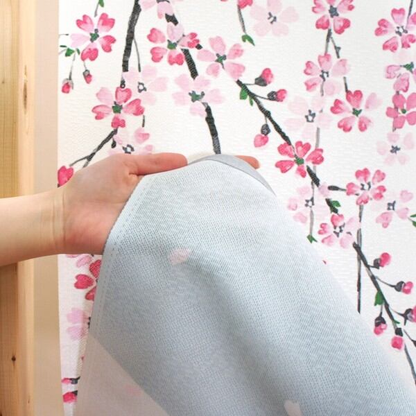 のれん 受注生産 目隠し しだれ桜と富士 85×丈90cm 日本製 和柄 和風 / 家具・インテリア ファブリック・敷物