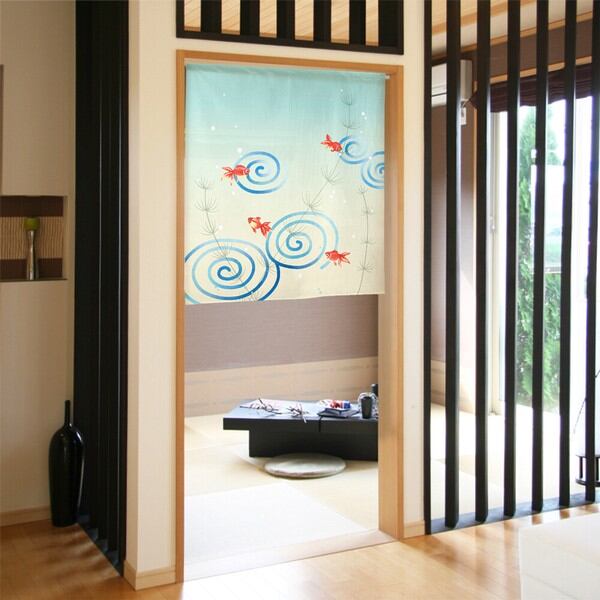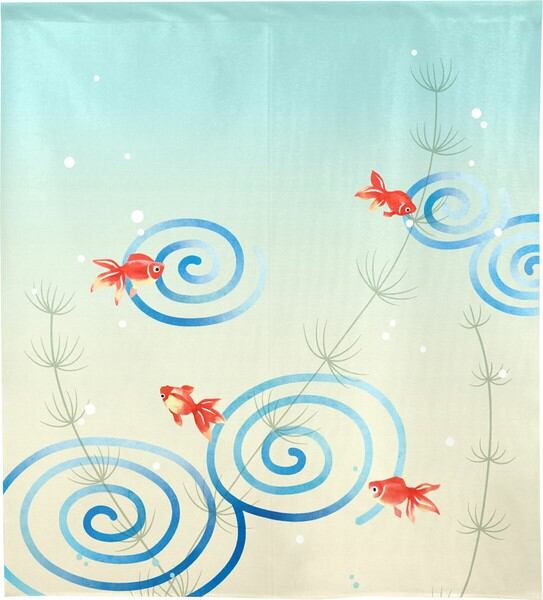 のれん 受注生産 目隠し 波紋金魚 85×丈90cm 日本製 和柄 和風 / 家具・インテリア ファブリック・敷物
