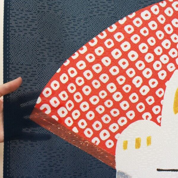 のれん 受注生産 目隠し 招き猫福扇子 紺 85×丈90cm 日本製 和柄 和風 / 家具・インテリア ファブリック・敷物