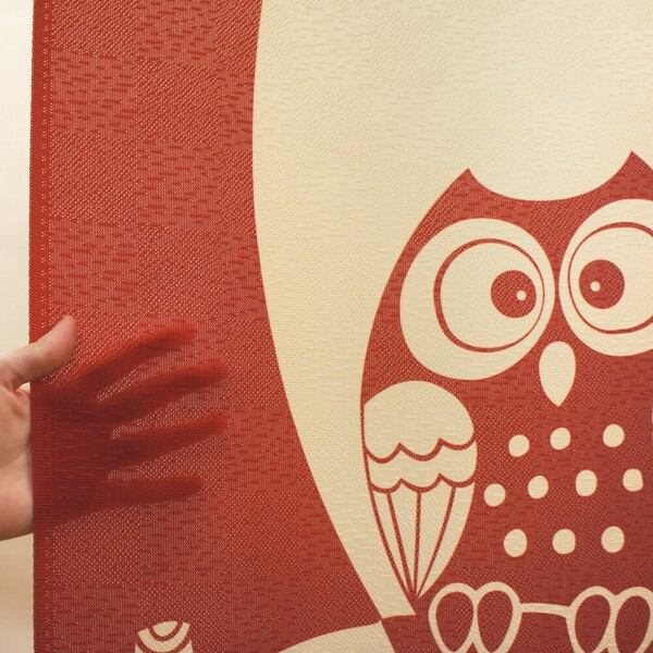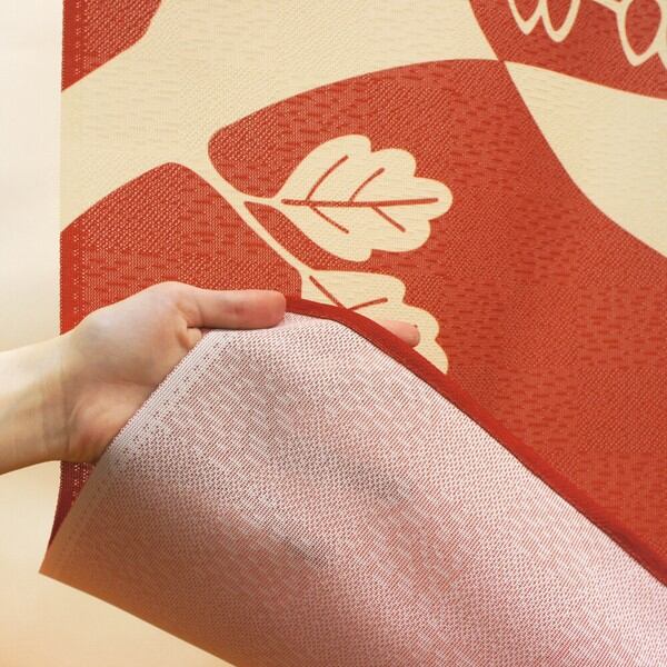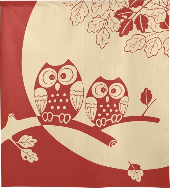 のれん 受注生産 目隠し 2匹のフクロウと葉 赤 85×丈90cm 日本製 和柄 和風 / 家具・インテリア ファブリック・敷物