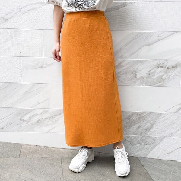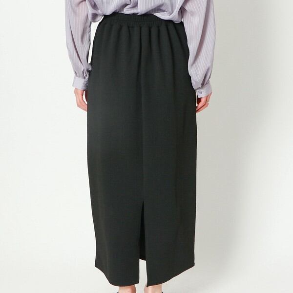 Iラインのすっきりとしたシルエットにポコポコしたデザインが特徴的なリブスカートが登場★ウエストゴム仕様の楽な穿き心地が魅力♪足捌きに配慮したバックスリットで、さり気なく抜け感をプラス◎カジュアルからフェミニンまで、幅広いスタイリングで活躍してくれるアイテムです☆