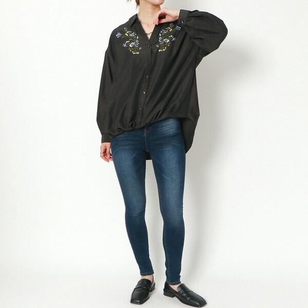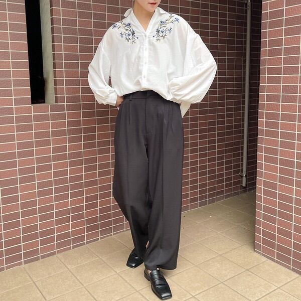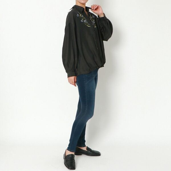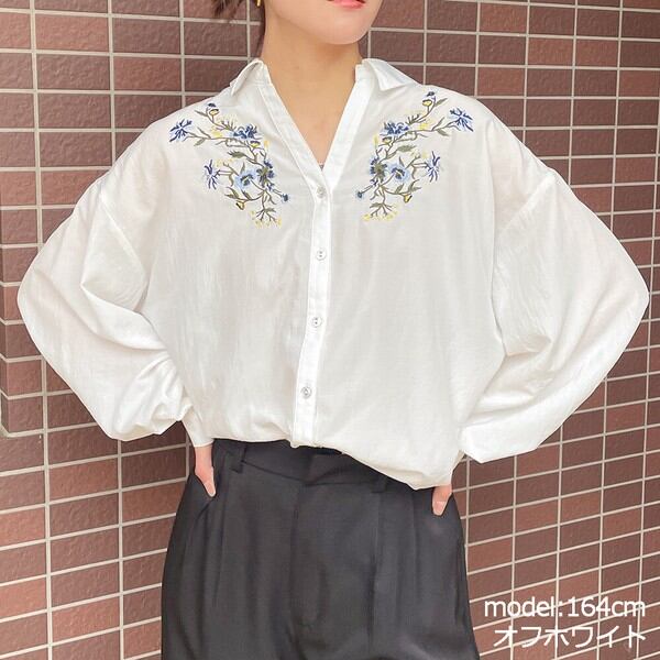 胸元に華やかなフラワー刺繍をあしらったブラウスが登場★ヘムにタックを入れてボトムスにインしなくてもふんわりシルエットをメイクできる仕上がりに♪バックにはレースアップをあしらったバックコンシャスなアイテム◎スカートにウエストインですっきり合わせたり、シンプルなデニムやテーパード、スラックスパンツで合わせてハンサムスタイルも楽しめます☆