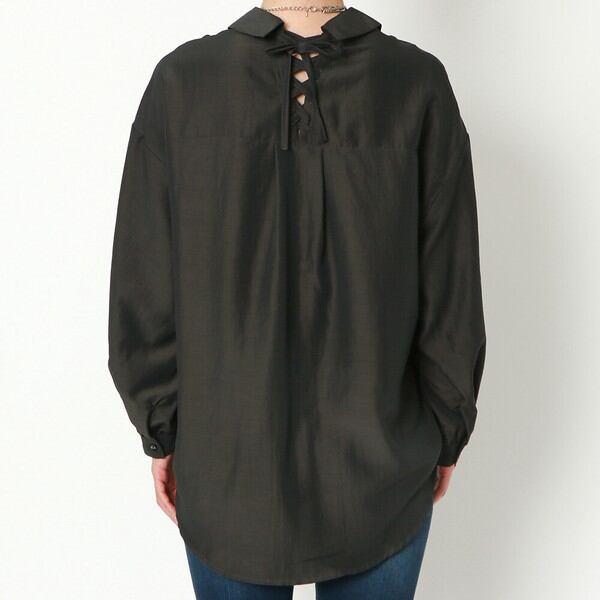 刺しゅうバックレースアップタケノコシャツ / ファッション レディースアパレル トップス シャツ・ブラウス