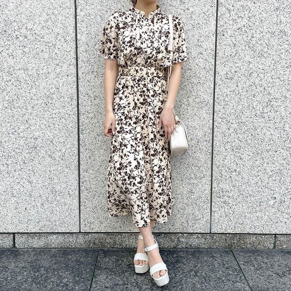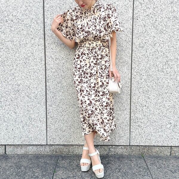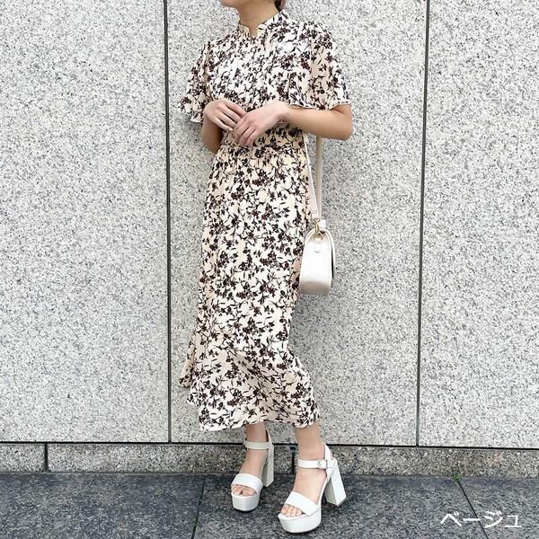 大人レディな魅力がぎゅっと詰まった花柄のワンピースが登場★袖口のフリルスリーブや、フロントの丸ボタン、トレンドのロング丈デザインが女性らしい雰囲気たっぷり♪ボディラインにメリハリをプラスするウエストのギャザーゴムもポイント◎普段使いはもちろんバカンスやオケージョンなどの夏のお呼ばれ・特別なお出かけ着としても、お洒落を楽しませてくれる主力アイテムです☆