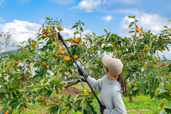 刃先にキャッチ機能搭載、切った枝や果実をハサミで保持します(※保持できる果実の重量は枝の形状や実のつき方によって異なります)