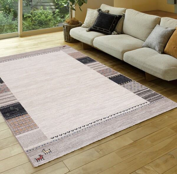 ウィルトン織ラグ ギャッベ風 ホット対応 ベルギー製 「アルガス」 ナチュラル / 家具・インテリア ファブリック・敷物 ラグ・マット