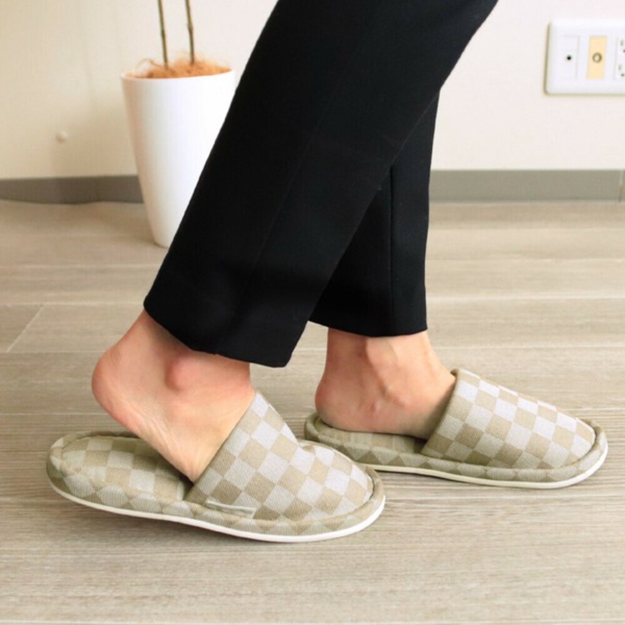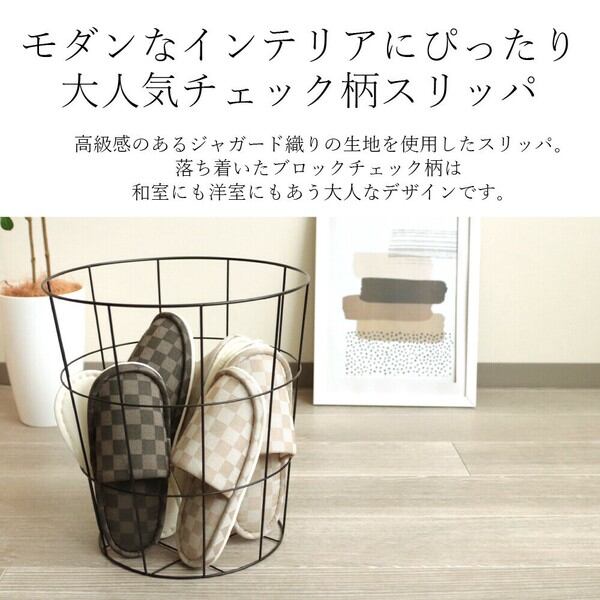 市松模様がシンプルでシックな「マス」柄のスリッパです
