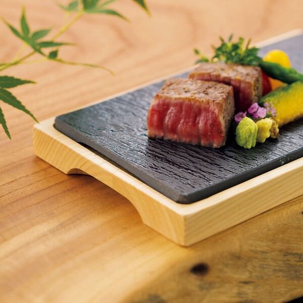 ☆陶器・黒石目調盛皿 長角)用木製プレート小 1点