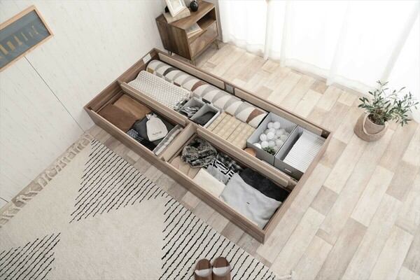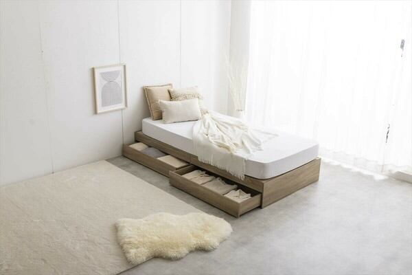 無駄なデザインを省いたシンプルなデザインですので、お部屋のどこにでも馴染むGlad ヘッドレス収納付きベッド シングルサイズ