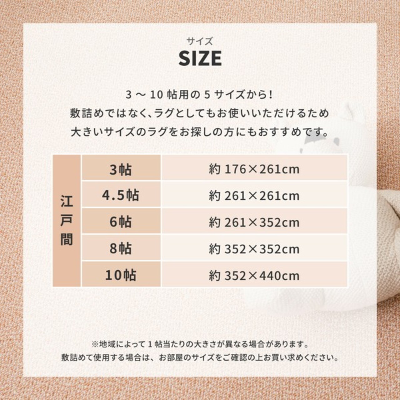 江戸間3帖(約176X261cm)