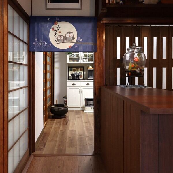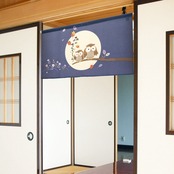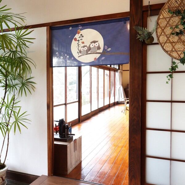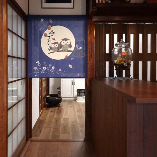 のれん 目隠し「森の知恵ふくろう ブルー」 日本製 和風 / 家具・インテリア ファブリック・敷物