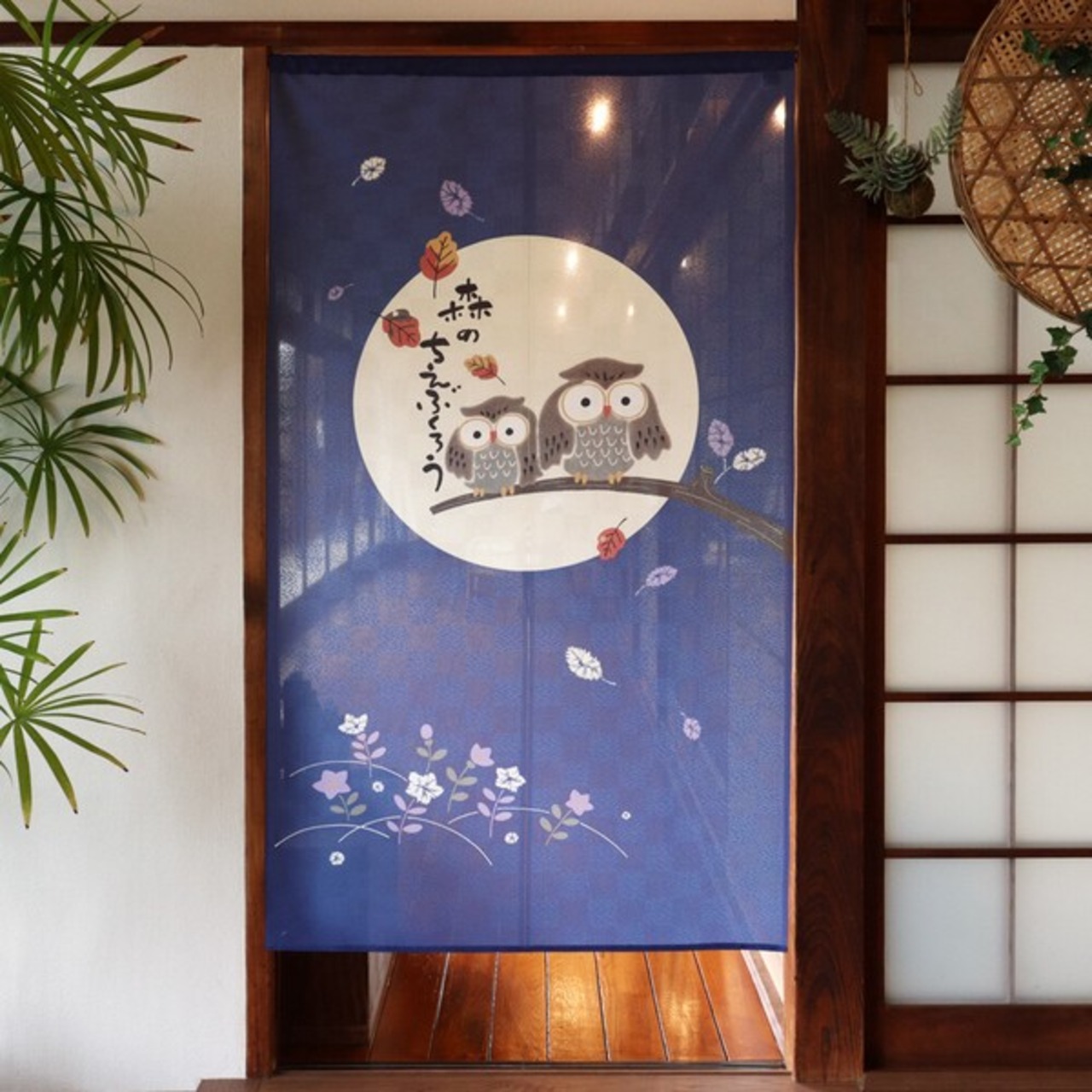 ☆のれん 「森の知恵ふくろうBL」 約幅 85cm × 丈 150cm 1点