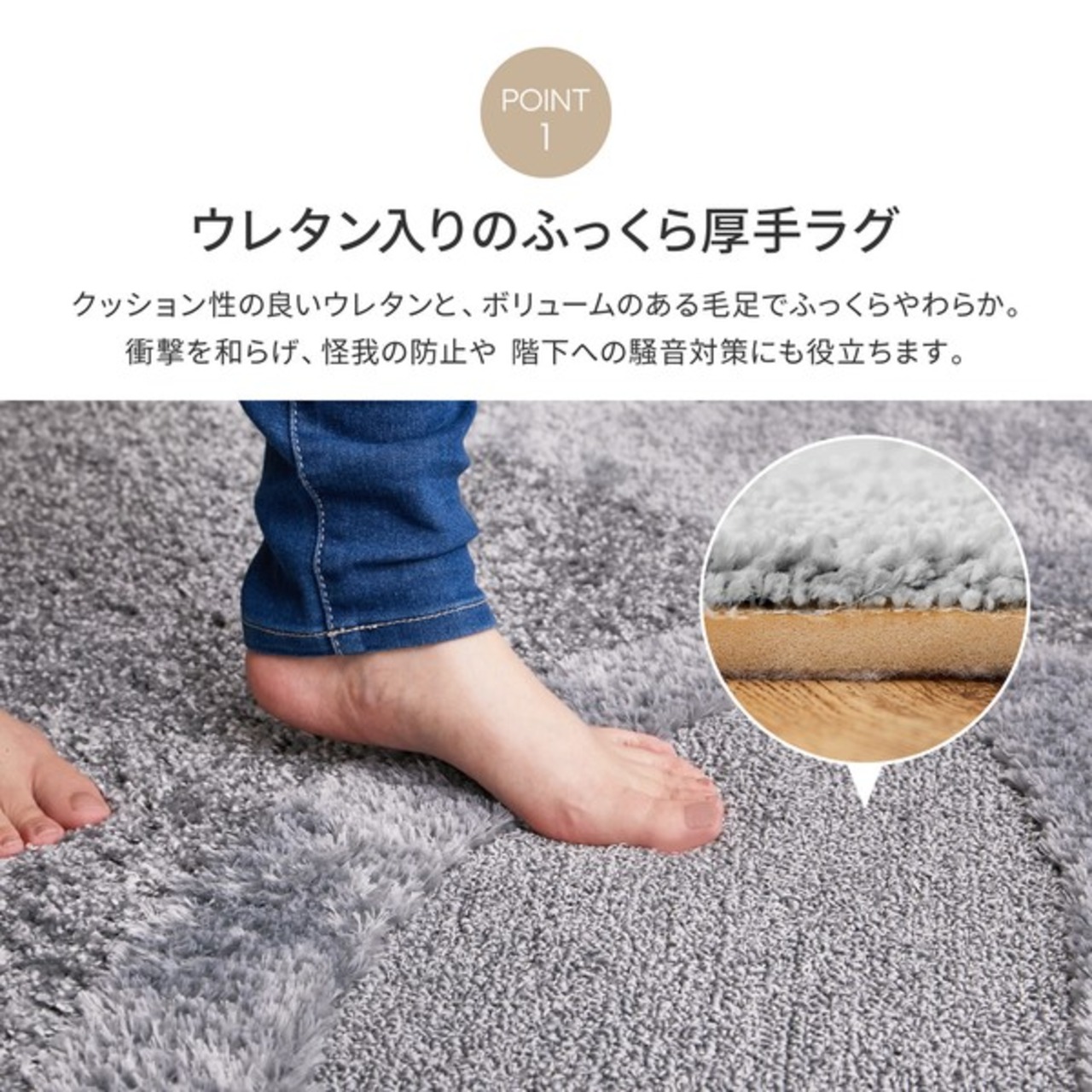 ウレタン入りでふっくらと仕上げた国産高機能ラグ