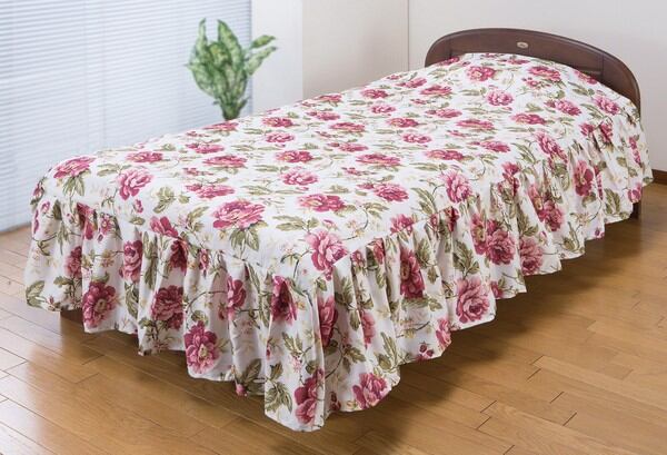 ●寝室を華やかに演出するバラ柄のベッドカバー