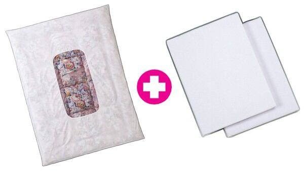 ●サイズ:(約)幅×長さ[掛布団]150×200cm、[固綿入り敷布団]100×200cm、[枕(無地)]43×63cm、[掛布団カバー(白)]150×200cm、[敷布団シーツ(白)]110×220+18cm、[枕カバー(白・筒型)]43×53cm×2枚、[枕カバー(同柄・フリル付き)]43×63cm