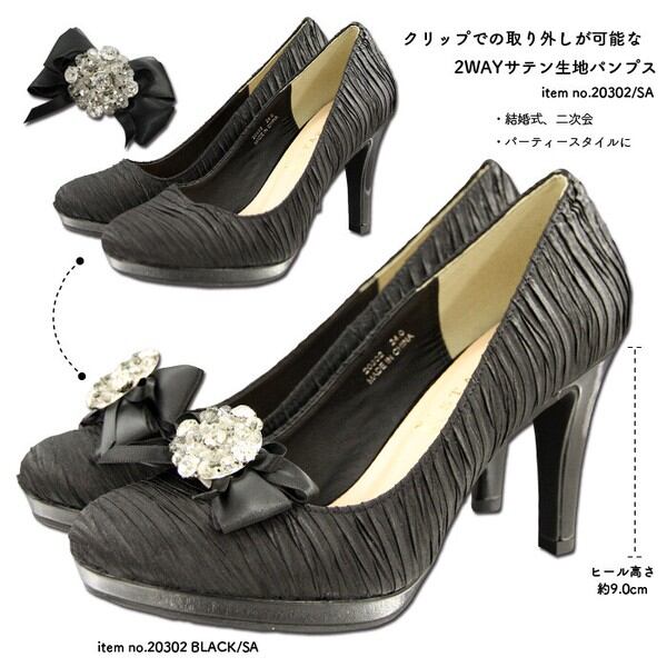 エレガンスパンプス 約9cmのハイヒール コサージュ&ビジュー付2WAY仕様!! 20302_20312 / ファッション 靴 パーティー