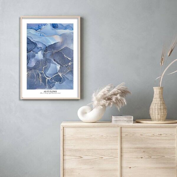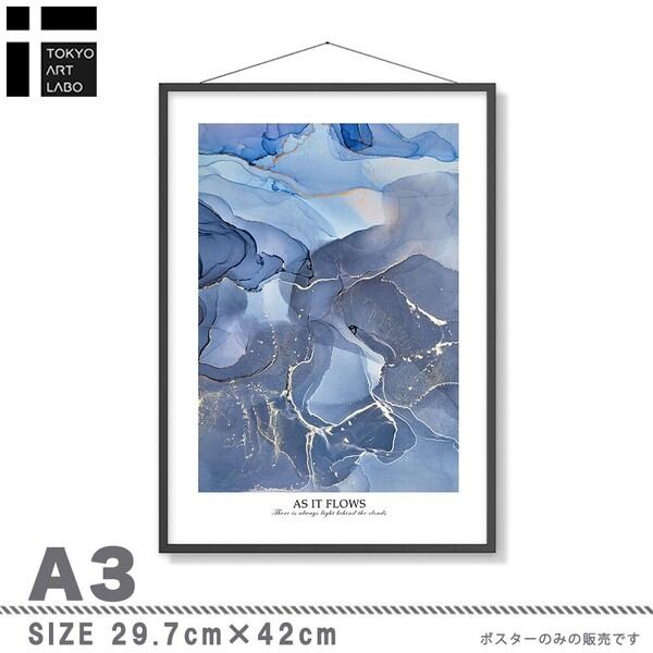 余白バランスが良い感じ As it flows ポスター A4 A3 北欧 モダン 絵 ナチュラル 大理石 青 / 家具・インテリア インテリアアート