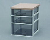 ■素材・成分:天板:プリント化粧紙パーティクルボード、引出し:スチロール樹脂