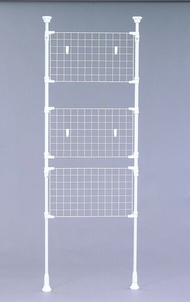 メッシュパネルをポールの内側に取り付けていますので、デザイン的にもすっきりし、小物をパネルの両面に掛けやすくなっています