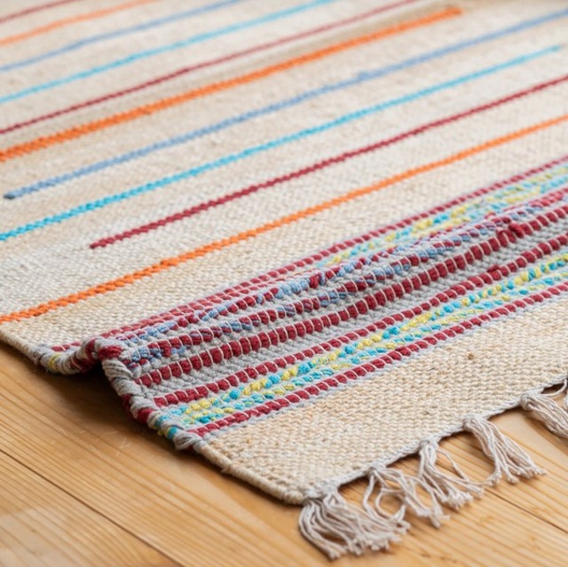 【5営業日以内に発送】 ●インテリアのアクセントにぴったりなデザイン 刺繍風の柄とポップな色合いが可愛らしいエスニックテイストのラグ 両端のフリンジがポイントで、大人っぽくオシャレな雰囲気をプラス♪ 職人のハンドメイドで仕上げているため、あたたかみのある優しい風合いがあります そのため、ナチュラルテイストの空間にアクセントとしてご使用いただくのもオススメです ●オールシーズン活躍する使用感 表面はサラっとした触り心地で、春夏の暖かい季節にピッタリです 模様替えしたい時にはコンパクトに畳むことができるので保管に困りません さらに床暖やホットカーペットにも対応しているため、オールシーズン快適に使えます ●豊富なサイズ展開 玄関マットサイズ〜大判のリビングで使えるサイズまで幅広いラインナップをご準備 一番マルチに使える定番サイズは130×190です お部屋づくりのイメージと合うサイズをお選びください 【ご注意】 ・商品の特性上、色ムラや織ムラ等個体差が出ます 1点物の風合いとしてお楽しみください ・職人の手作業で仕上げておりますので、サイズに数cm誤差が出ることがございます ・濡れた状態での長時間放置、強い摩擦により色移りしますのでご注意ください ・長い間一定の場所に敷いたままにしますと、床面にラグの形状や模様の跡が 付着することがあります 定期的に床面の掃除をしてください 【お手入れについて】 ・ロボット掃除機のご使用はお控えください ほつれの原因となります ・汚れた場合は布に薄めた中性洗剤を含ませ、軽く部分的に叩くように拭き、 その後水洗いした布で洗剤を拭き取り乾拭きをした後陰干ししてください ・丸洗いをする場合必ず手洗いにて、押し洗いをして陰干ししてください もみ洗いは色落ち・痛みの原因となりますので避けてください ・長時間直射日光が当たると色落ち・変色することがございます ・洗濯機・乾燥機には対応しておりません 【サイズ・容量】 45×75マット 【梱包サイズ】巾47×奥行31×高さ6計84(cm)※1梱包5枚入り 【梱包重量】2.1kg 90×130ラグ 【梱包サイズ】巾92×奥行24×高さ8計124(cm)※1梱包3枚入り 【梱包重量】4.2kg 130×190ラグ 【梱包サイズ】巾132×奥行10×高さ10計152(cm)※1梱包1枚入り 【梱包重量】3.0kg 190×190ラグ 【梱包サイズ】巾192×奥行13×高さ12計216(cm)※1梱包1枚入り 【梱包重量】6.1kg 190×240ラグ 【梱包サイズ】巾192×奥行14×高さ13計219(cm)※1梱包1枚入り 【梱包重量】7.2kg 【規格】 ■生産地:インド ■素材・成分:ファブリック ■パッケージ:個包装 ■製造年:2021 【商品ラインナップ】 ★:このページでお買い求めいただけます。 ☆:他ラインナップです。下記URLからお買い求めくださいませ。 https://www.rocinante-online.com/search?q=204174-9864386 ☆190×240ラグ 1点 ☆130×190ラグ 1点 ★190×190ラグ 1点 管理コード:SD-204174-9864386-S13110-2025-01-26