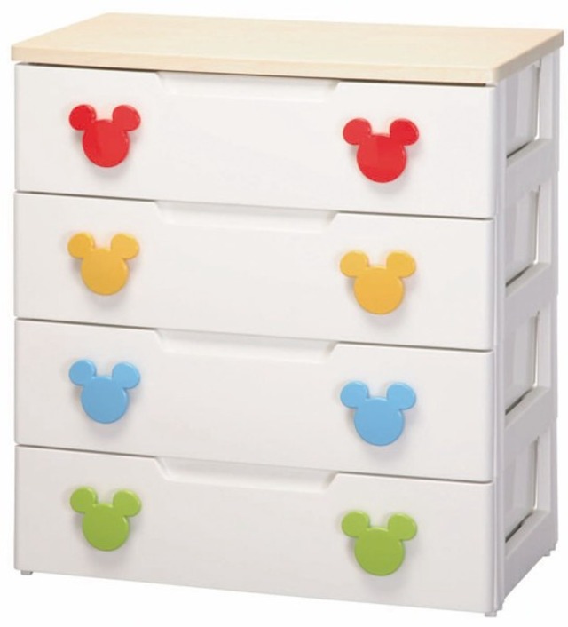 【発送予定日はお問い合わせください】 ※大口購入をご希望の方はメッセージからお気軽にお問い合わせください キャラクター(ミッキー)が付いた木天板付きチェストです おむつや衣類など子供の成長に合わせて使用できます 引出しには開閉がスムーズなスライドレールを採用しています 取っ手はかわいらしいデザインで、子供でも握りやすい大きさです ◆収納・家具 【サイズ・容量】 MHG-724 【商品サイズ(約mm)】W730×D430×H810 【商品重量(g)】14026 MHG-725 【商品サイズ(約mm)】W730×D430×H1000 【商品重量(g)】16800 【規格】 ■生産地:日本 ■素材・成分: 天板:合成樹脂化粧繊維板(塩化ビニル樹脂・MDF) 本体・引出・フレーム:ポリプロピレン 前パネル:スチロール樹脂 取手:ABS樹脂 【商品ラインナップ】 ★:このページでお買い求めいただけます。 ☆:他ラインナップです。下記URLからお買い求めくださいませ。 https://www.rocinante-online.com/search?q=204258-3650855 ★キッズカラー4段MHG-724 1点 ☆キッズカラー5段MHG-725 1点 管理コード:SD-204258-3650855-S13610-2024-10-21