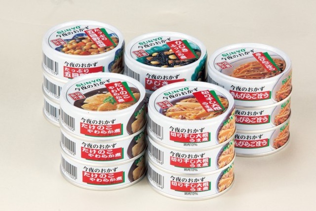 【2週間以内に発送】 非常食に便利な5種の煮物惣菜缶詰 ●缶を開ければ、おふくろの味!作ると手間のかかる煮物がすぐに食べられます 素材の味わいをいかした人気の5種類、非常食や保存食にもお勧め! ●もう一品にうれしい食べきりサイズ! ●ご飯のおかずに!酒の肴に!災害・非常時に! ●缶切不要 ●賞味期限/製造日より常温3年6ヶ月 ●原産地/中国・日本 ●加工/日本 [写真の説明] (1枚目)商品画像 (2枚目)切り干し大根うま煮 (3枚目)ひじきふっくら煮 (4枚目)たっぷり五目野菜豆 (5枚目)きんぴらごぼう (6枚目)たけのこやわらか煮 (7枚目)商品説明 【サイズ・容量】●内容量/各70g(たっぷり五目野菜豆・ひじきふっくら煮・切り干し大根うま煮・たけのこやわらか煮)、50g(きんぴらごぼう)×各3缶 【規格】 ■保存方法:●賞味期限/製造日より常温3年6ヶ月 【商品ラインナップ】 ★:このページでお買い求めいただけます。 ☆:他ラインナップです。下記URLからお買い求めくださいませ。 https://www.rocinante-online.com/search?q=204784-8271184 ★サンヨーおかず缶 15缶 1点 ☆サンヨーおかず缶 30缶 1点 管理コード:SD-204784-8271184-S4900-2024-10-01