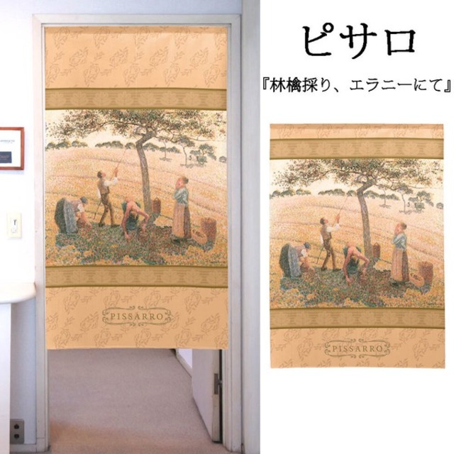 のれん 受注生産 目隠し 「ピサロ_林檎採り、エラニーにて」 日本製 洋風 絵画 / 家具・インテリア ファブリック・敷物
